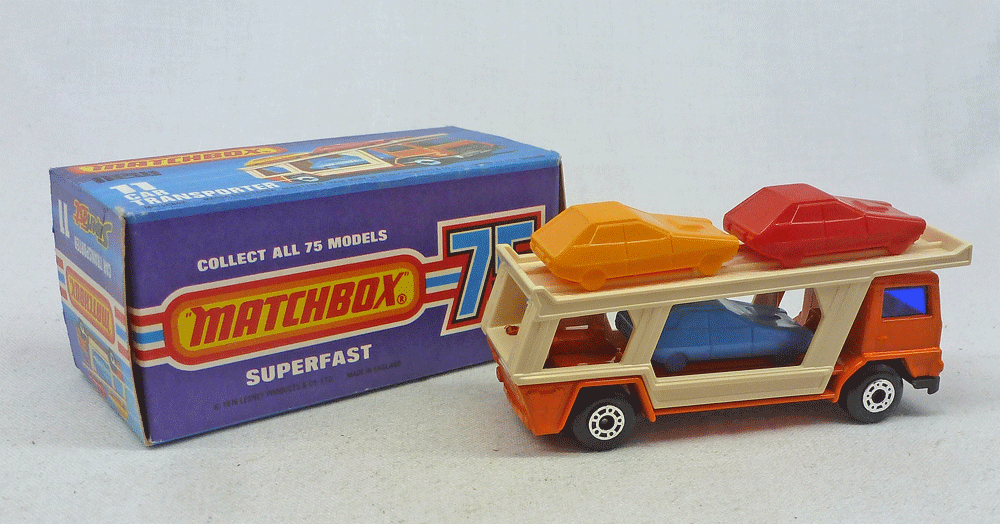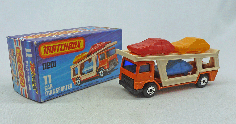 Mint model in orange with dark blue windows, cream rear & satin black painted base.