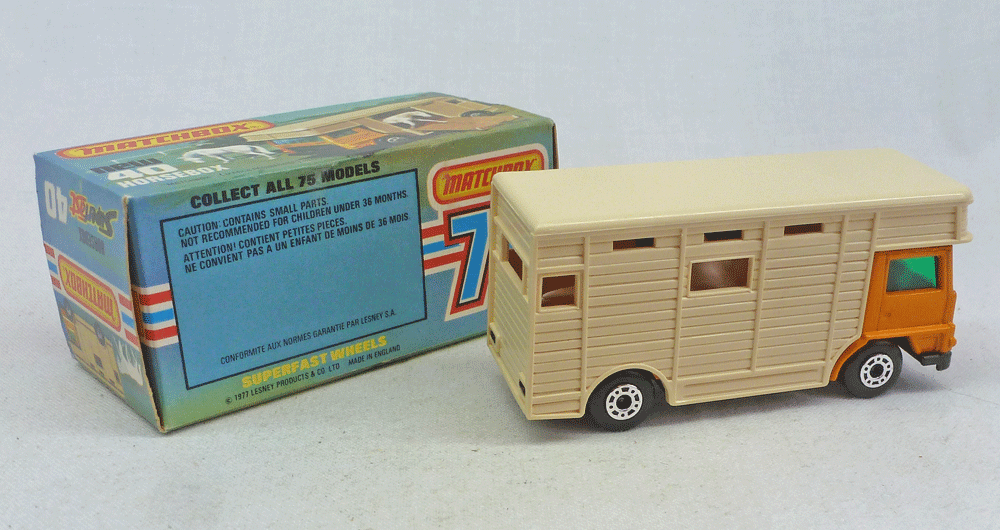 Mint model in light orange with cream rear, brown door, darker green windows, gloss black painted base complete with both horses.